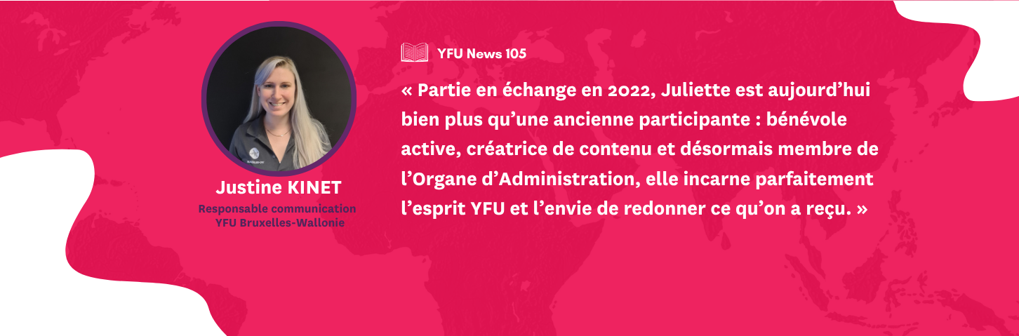 Deux ans plus tard, Juliette n’est plus seulement une ancienne participante : elle est devenue une véritable ambassadrice de l’esprit YFU.
